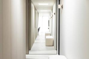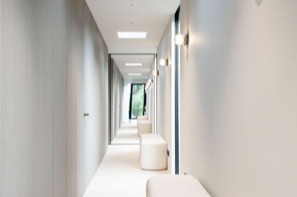 Die Innenarchitektur folgt einem klaren, reduzierten Konzept, das auf das Wesentliche fokussiert ist. Samtige Bodenspachtelungen erzeugen eine warme, fließende Oberfläche, während maßgefertigte, perfekt angepasste Schrank- und Möbellösungen zurückhaltend integriert sind. Jedes Element ist präzise auf die Architektur abgestimmt, wodurch eine ruhige und gleichzeitig elegante Atmosphäre entsteht.