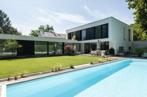 Durch das Zusammenspiel von Neubau, Bestandsgebäude und Außenpool entsteht ein harmonisches, ganzheitliches Ensemble. Der neue Baukörper und der Pool rahmen den Garten und schaffen eine einladende „cosy“ Atmosphäre, in der Innen- und Außenbereiche eng miteinander verzahnt sind.